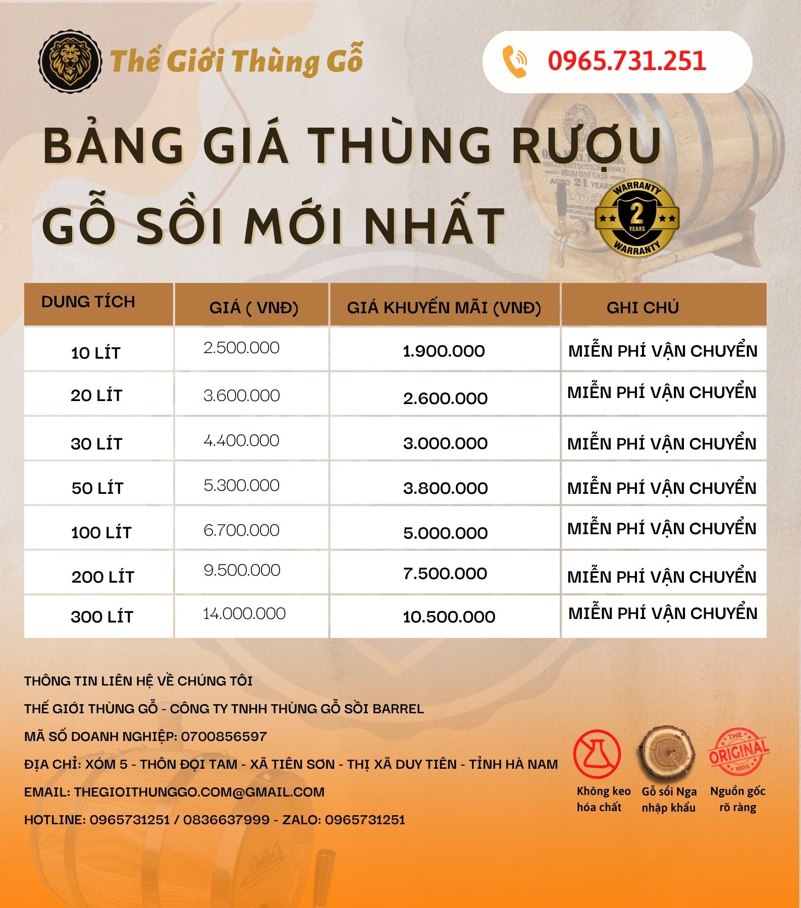 Để biết chi tiết hơn, mời mọi người cùng chúng tôi tham khảo giá bán thùng gỗ sồi ngâm rượu tại xưởng mới nhất 2024 nhé.