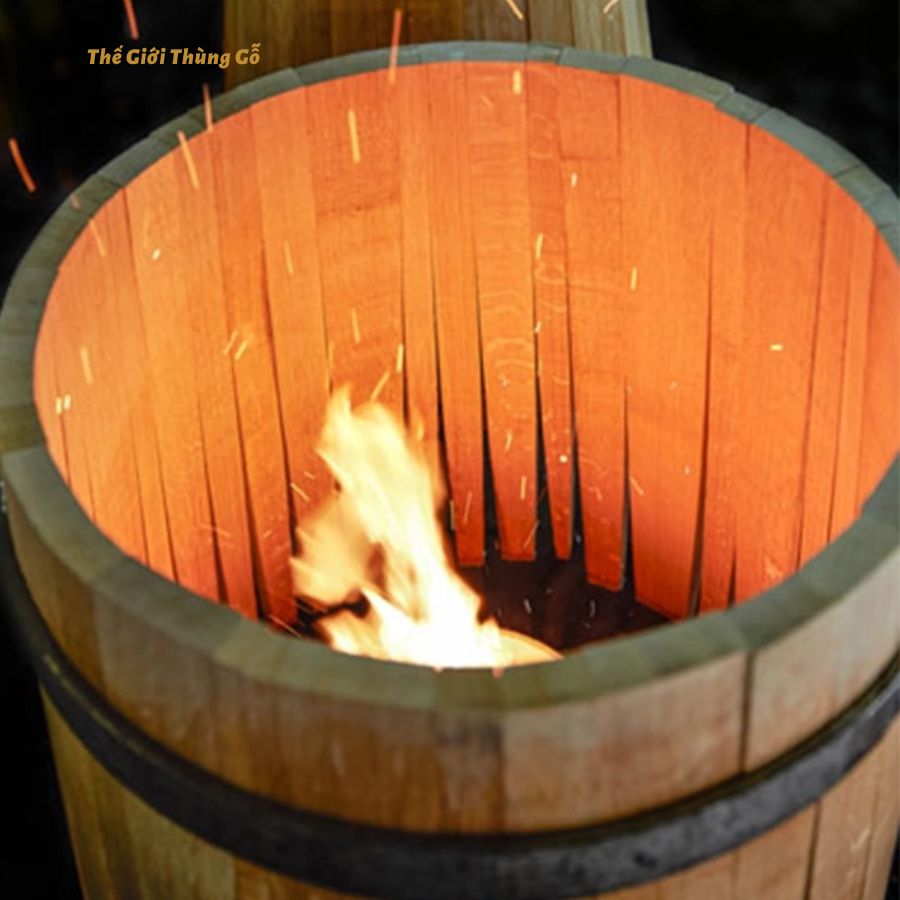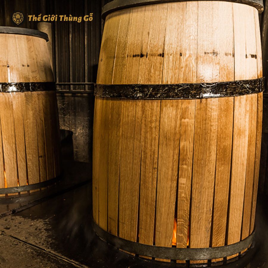 Sau khi uốn và định hình được thùng gỗ sồi, người ta sẽ tiến hành đốt lửa bên trong ruột thùng. Việc đốt bên trong thùng phải được đảm bảo theo độ tiêu chuẩn nhất định. Trung bình, mỗi thùng sẽ mất khoảng thời gian 40 phút để hoàn thành xong bước này.