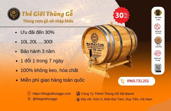Thùng rượu gỗ sồi với nhiều tác dụng tuyệt vời cho sức khỏe cũng như hương vị hảo hạng của mình, hứa hẹn sẽ là thức uống được nhiều người sành rượu yêu chuộng. Nếu bạn là người yêu thích và sưu tầm rượu ngoại thì thùng rượu gỗ sồi sản xuất tại Thế Giới Thùng Gỗ là lựa chọn vô cùng hoàn hảo bởi chất lượng sản phẩm được sản xuất trên công nghệ tiên tiến cũng như được chọn lọc kỹ càng, giá cả lại phù hợp túi tiền.