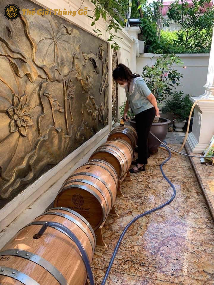 Trước khi đổ rượu vào, bạn cần ngâm thùng trong khoảng từ 3 tới 5 ngày bằng nước sạch. Trong khoảng thời gian đó, bạn nhớ kiểm tra xem độ thẩm thấu của nước như thế nào. Đặc biệt, không được ngâm nước quá lâu sẽ ảnh hưởng đến thớ gỗ bởi các thớ gỗ sồi phải có sự giãn nở nhất định thì khi ngâm rượu sẽ đảm bảo chất lượng và không bị hao rượu.